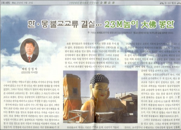 한몽 불교 교류가된 23m 높이 大佛 봉안. 페이지 정보 작성자 최고관리자 작성일20-09-10 15:08 조회304회 댓글0건 관련링크 이전글 다음글 목록 본문 한몽 불교 교류가된 23m 높이 大佛 봉안. 이전글 다음글 목록